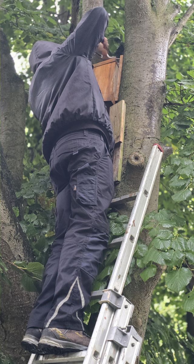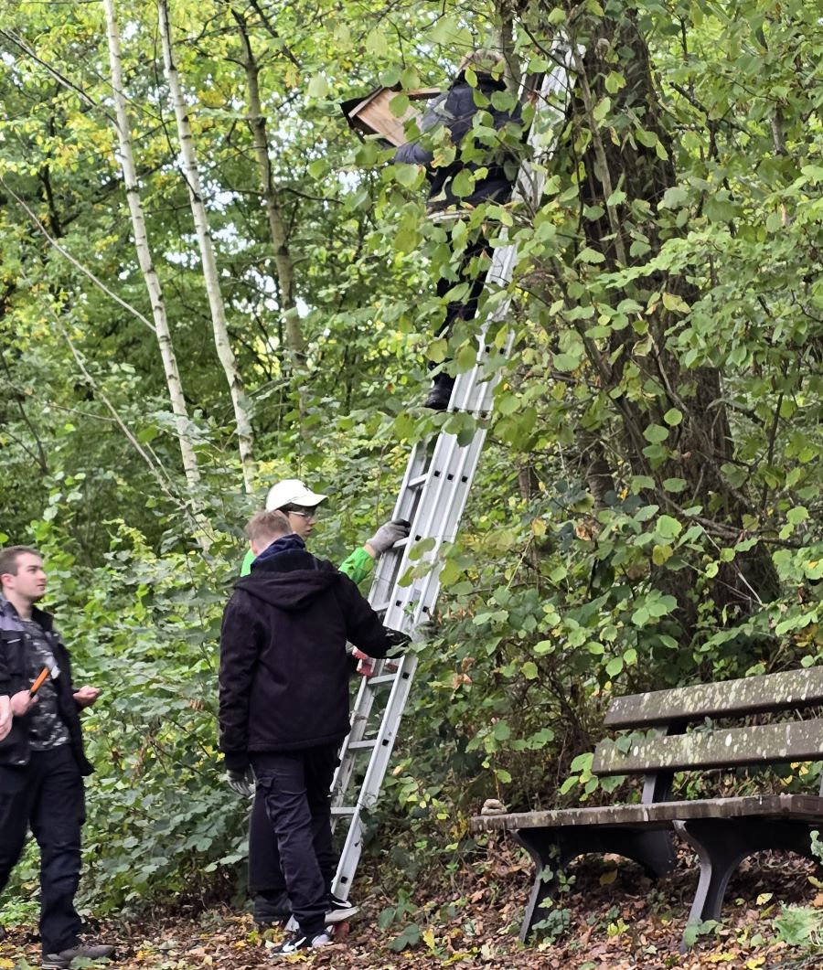 Zusammen mit dem kommissarischen Jugendwart, Tobias Keienberg, und zwei weiteren erwachsenen Helfern haben die Jugendlichen rund vier Stunden aufgebracht, um die Nistkästen zu reinigen, auszubessern oder gar in Gänze zu ersetzen. Zum Austausch sind noch neue Nistkästen vorhanden, welche von der Jugendgruppe auch immer selbst gebaut werden. Zusätzlich zu neuen Nistkästen wird immer einiges an Werkzeug, Ersatzteilen und Leitern mitgeführt.